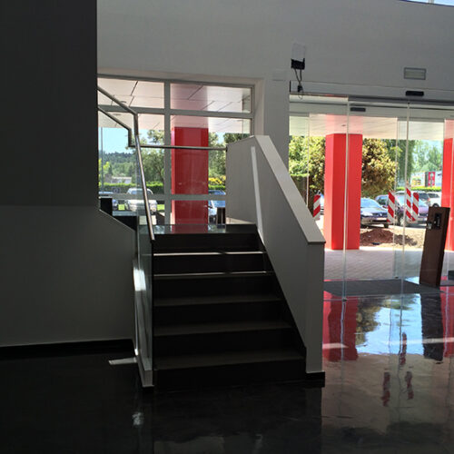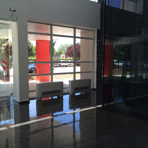 En esta ocasión aprovechamos una necesidad de MAHOU SAN MIGUEL  de eliminar barreras arquitectónicas en su entrada principal, para aportar un profundo cambio de imagen  a todo su vestíbulo de acceso sin extracostes importantes.