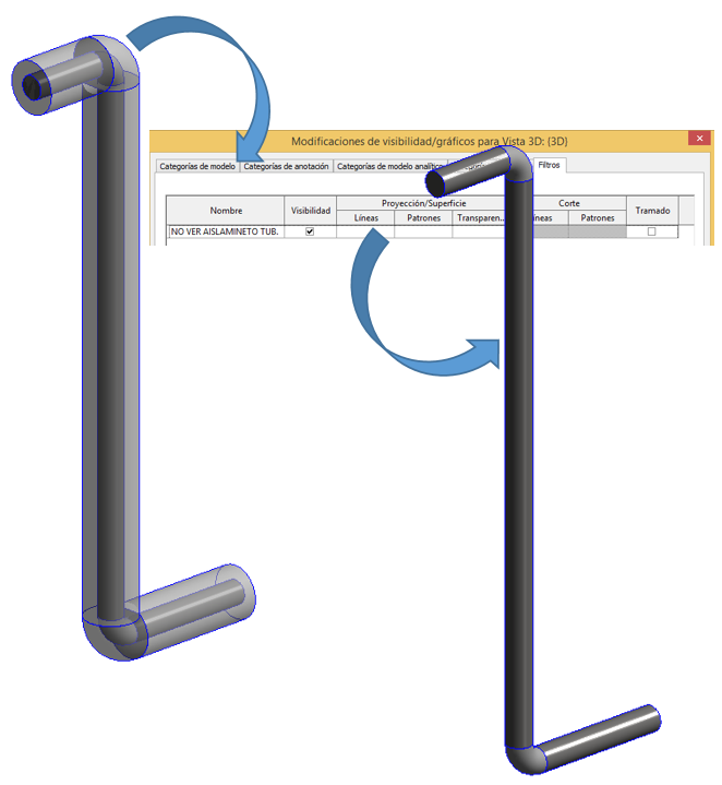 Cuando trabajamos con redes de tuberías puede ser habitual que estén aisladas y dicho aislamiento suele ser muy complicado de seleccionar y aún más de ocultar en determinadas vistas.